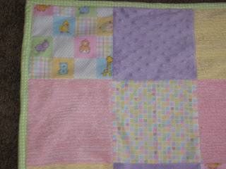 A little while ago, Tyson had a coworker who was diagnosed with Malignant Melanoma. Long story short, her family decided to put together a silent auction to raise funds for her treatments. They asked for donations to help out with the auction. Tyson and I talked about it and decided I would make a couple blankets to donate. Well, that conversation was the last time we talked about it. Until this last Wednesday when Tyson called to see if I was still planning on donating some blankets. Sure, that was the plan. Well, the auction was for this Saturday, yes, that's in three days. I hadn't even started the blankets, nor had I been to the fabric store to even get the fabric together for the blankets. Tyson said he'd contribute by watching the kids so I could go get the fabric. I informed him that if these blankets where to be finished and ready for Saturday, the house was going to be neglected...and that it was. This house was the worst its ever been! It wasn't gross dirty, just cluttered with bits and pieces of fabric. That drives me CRAZY!! Anyway, I started cutting Thursday and had most of the fronts put together by Thursday night. I was up until 12:30 doing that. Friday night, I was up until 3am getting the backs put on and the binding half way done and up by 7:30 Saturday morning to get them finished. Now, all this work was not just for two blankets. By the time I got the fabric from the store and went through my fabric at home, I had enough to put five blankets together. Anyway, if that wasn't a long enough explanation. Here are some of the finished products.